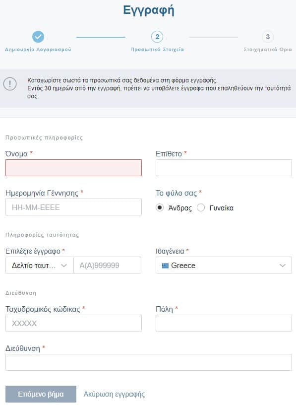 ΒΗΜΑ 2 - Προσωπικά στοιχεία