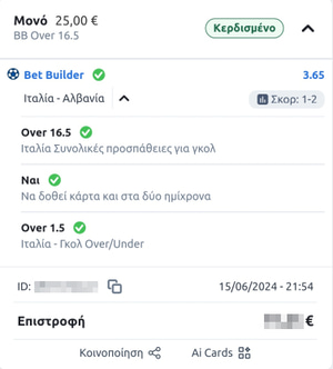 Βήμα 1ο: Μπαίνεις στο Stoiximan AI Cards και επιλέγεις ένα κερδισμένο στοίχημα