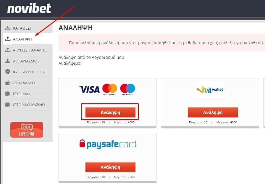 Πως μπορώ να κάνω ανάληψη από Novibet